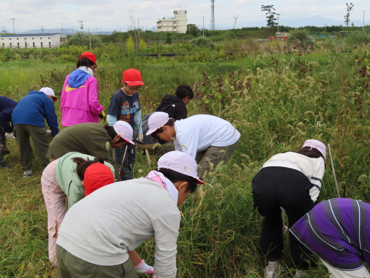 ひっつき虫に少し手こずりながらも、どんどん雑草を刈り取ってもらいました。中には全部引っこ抜いて抜根をする力持ちもいて頼もしかったです。さすが5年生。