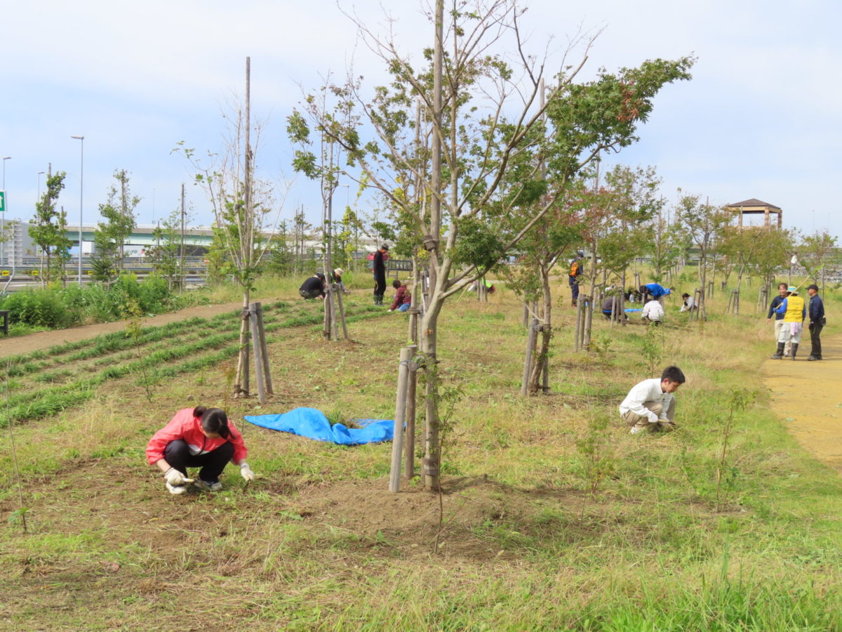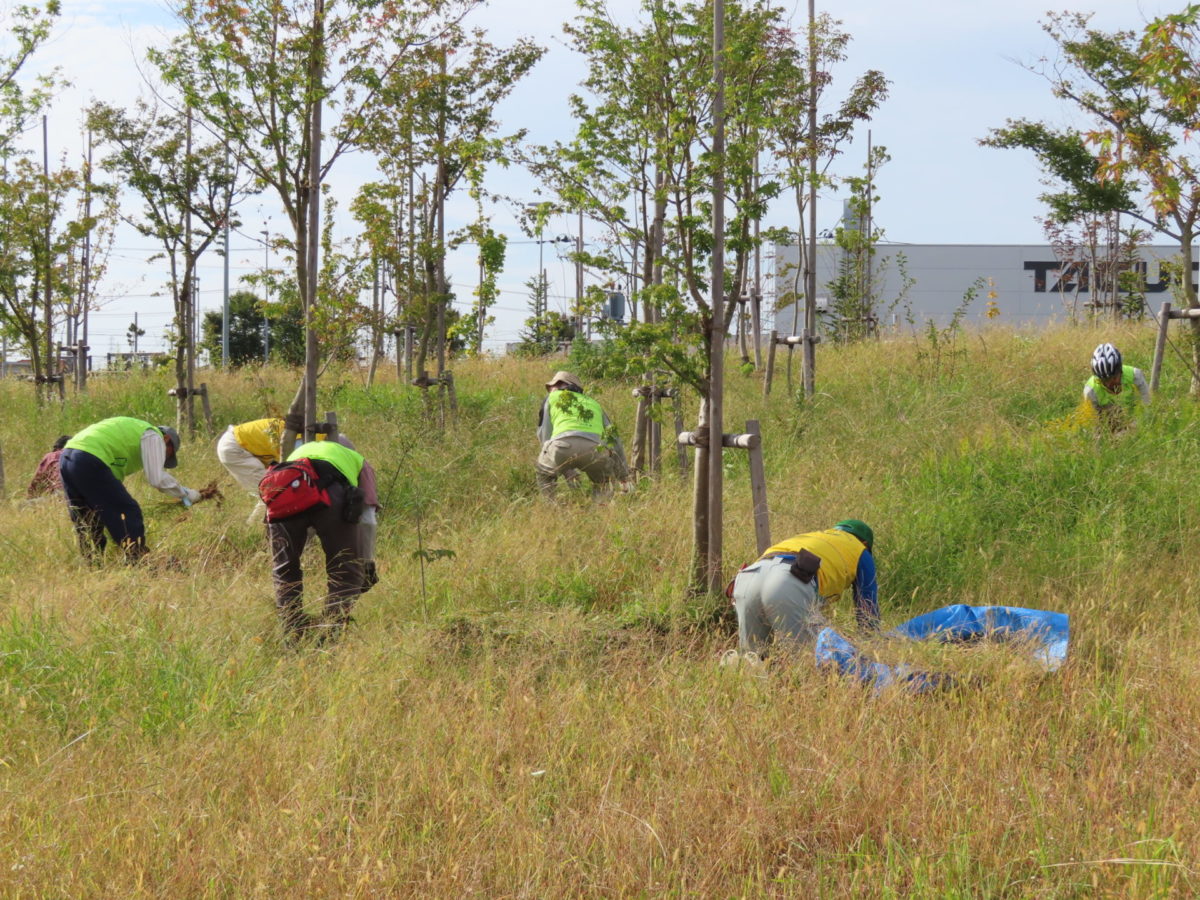 高砂中央公園では2回目となる育樹会を10月18日に行いました。ちょうど2年前に植樹会で植えた苗木も雑草の下の方に隠れてしまってます。