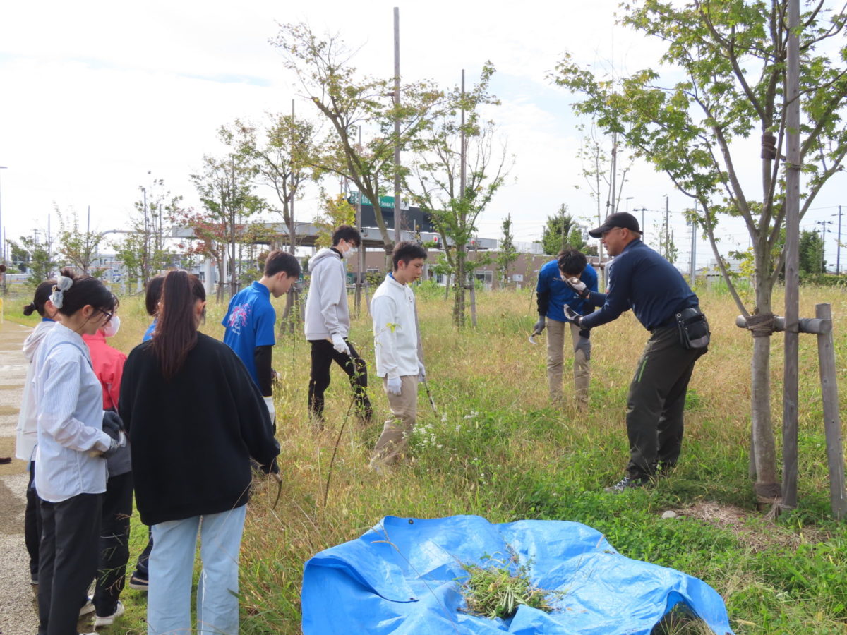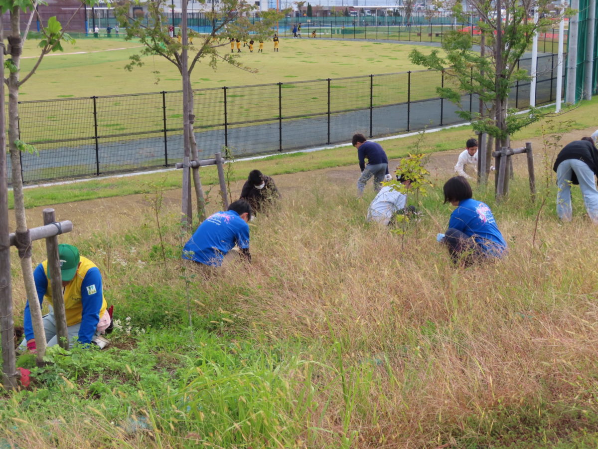 9時の開始から、育樹サポーターの方々とふる杜再生プロジェクトメンバー、海岸公園センターハウスのスタッフの方々で、苗木周りの除草を行いました。