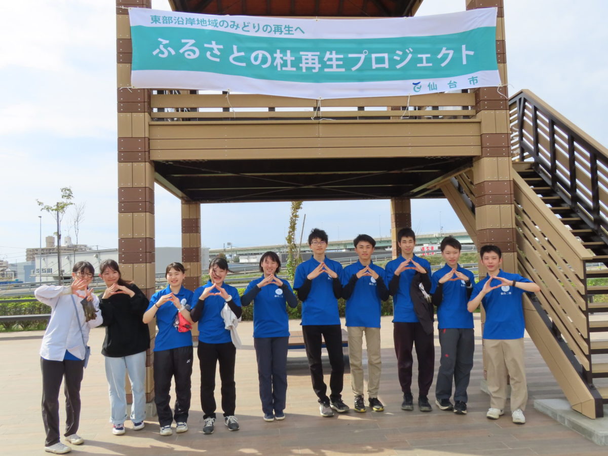 またこの日は、仙台二華高校のワンダーフォーゲル部が10人で来てくれました。育樹の説明を聞いてから、真剣に取り組んでくれました。文化祭の売上をふるさとの杜再生プロジェクトに寄付していただき、さらに活動にも参加いただいて本当にありがとうございます!