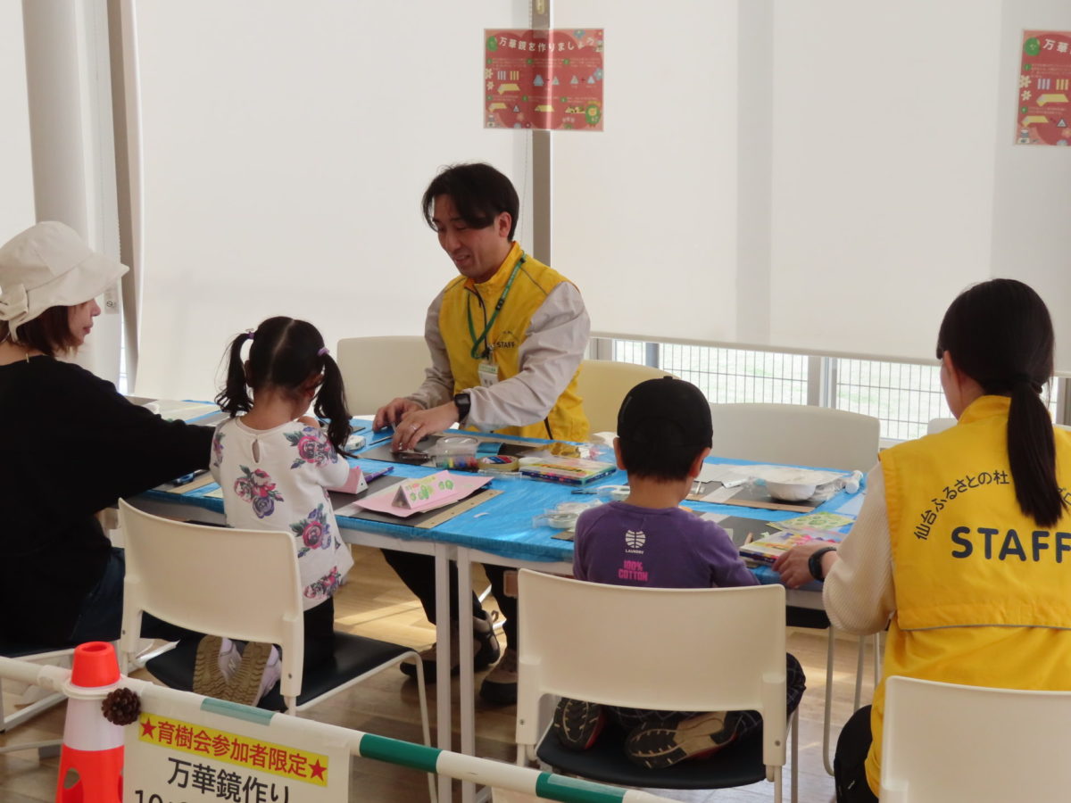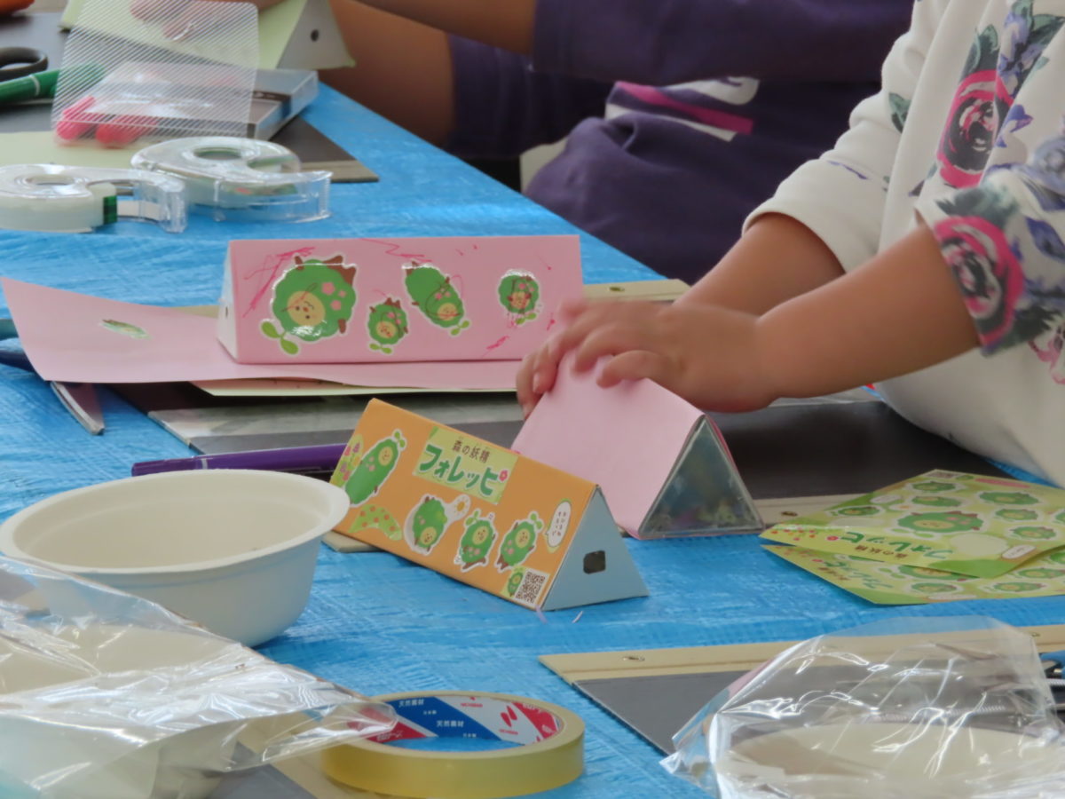 また、今回も育樹会特典の万華鏡づくりも準備しました。万華鏡をつくりたくて、草取りをしてくれたこども達もいましたね。上手に三角形の筒を作ってくれました。