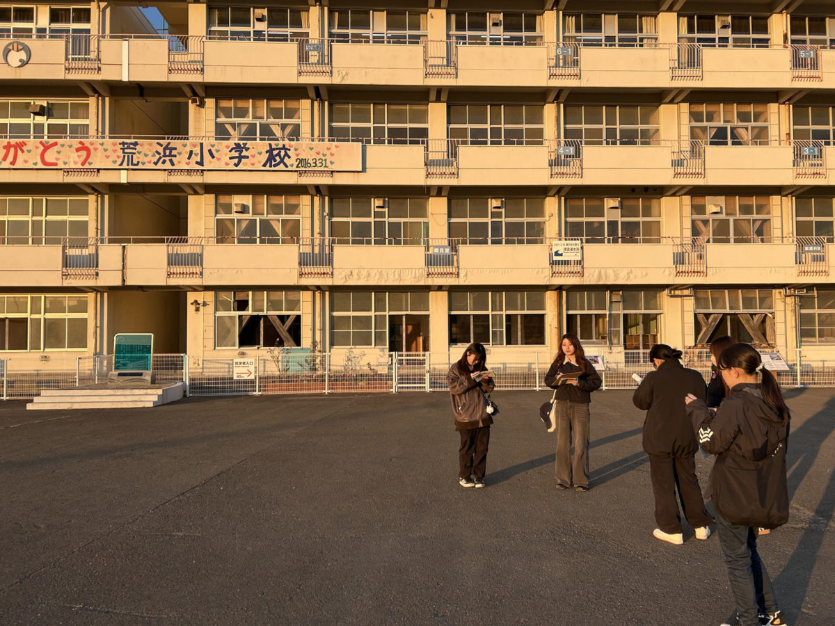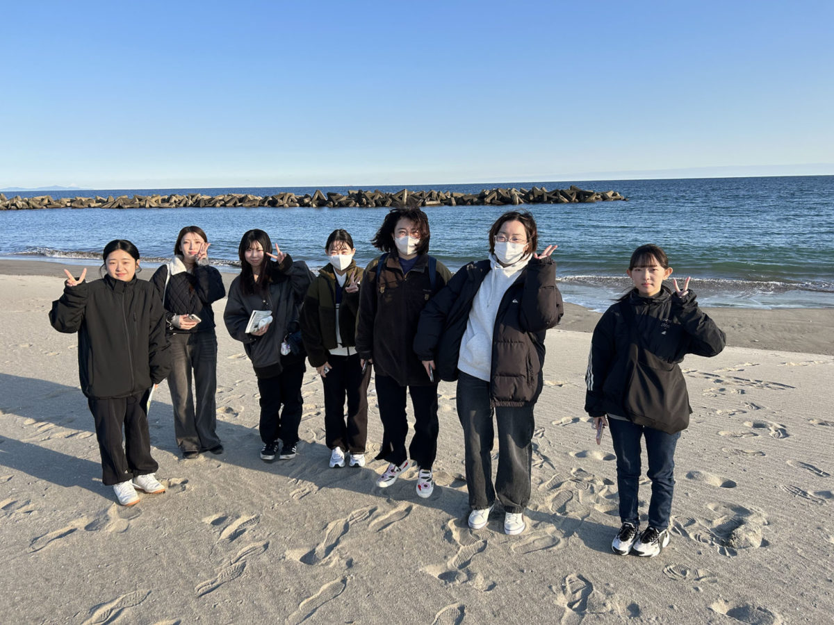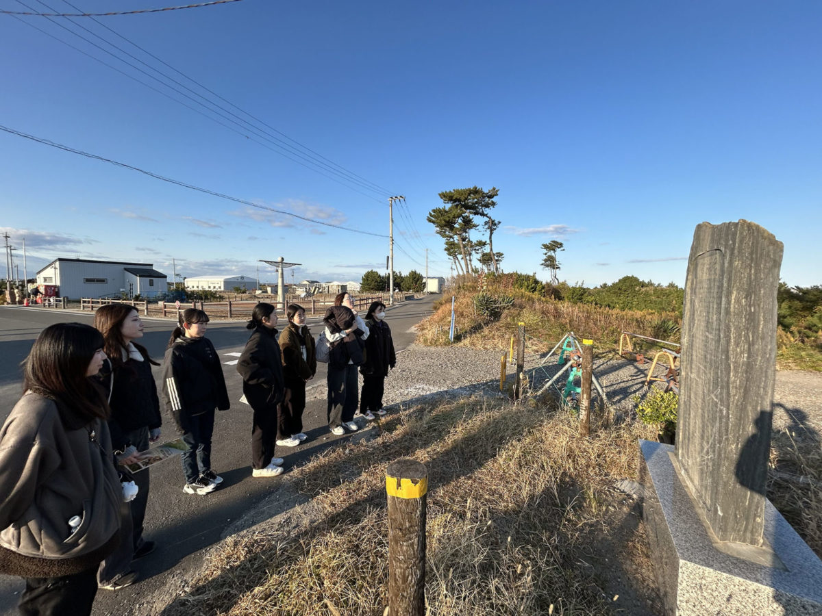 その後は海岸防災林を抜けて砂浜に出て、愛林碑や住宅基礎をまわり、震災遺構仙台市立荒浜小学校を見学し、充実したフィールドワークとなった様です。荒浜地区に来たのが初めての学生さんが多く、震災復興まちづくりの観点や生物多様性の環境学習など、現場でしか得られない貴重な体験をされました。
